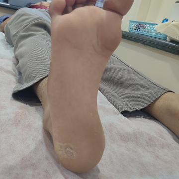 As Jay continued his daily commute from Andheri to Borivali for NEET coaching classes, the strain on his feet began to show. He developed a trophic ulcer under his right heel, which progressed into a deep wound nearly one inch in depth. Despite intermittent medication and home dressings, the ulcer refused to heal. The missing link? Constant pressure on the wound during travel. Every step Jay took was unknowingly crushing the fragile healing tissues.