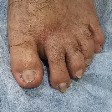 Amish Choksi, a 59-year-old male, suffered from a severely painful pincer nail that made wearing shoes unbearable. His medical history included an ankle injury with multiple muscle tendinitis, further complicating his mobility.