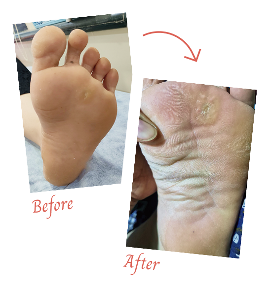Significant calluses & corn size reduces, pain subside